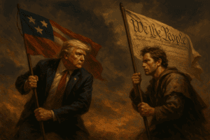 But revolution is rarely neat, and if the streets erupt, the battle won’t just be over leadership—it will be over identity itself. One side will wave the flag Trump has crafted for them, while the other brandishes the Constitution, clinging to its promise that the republic can still be saved.